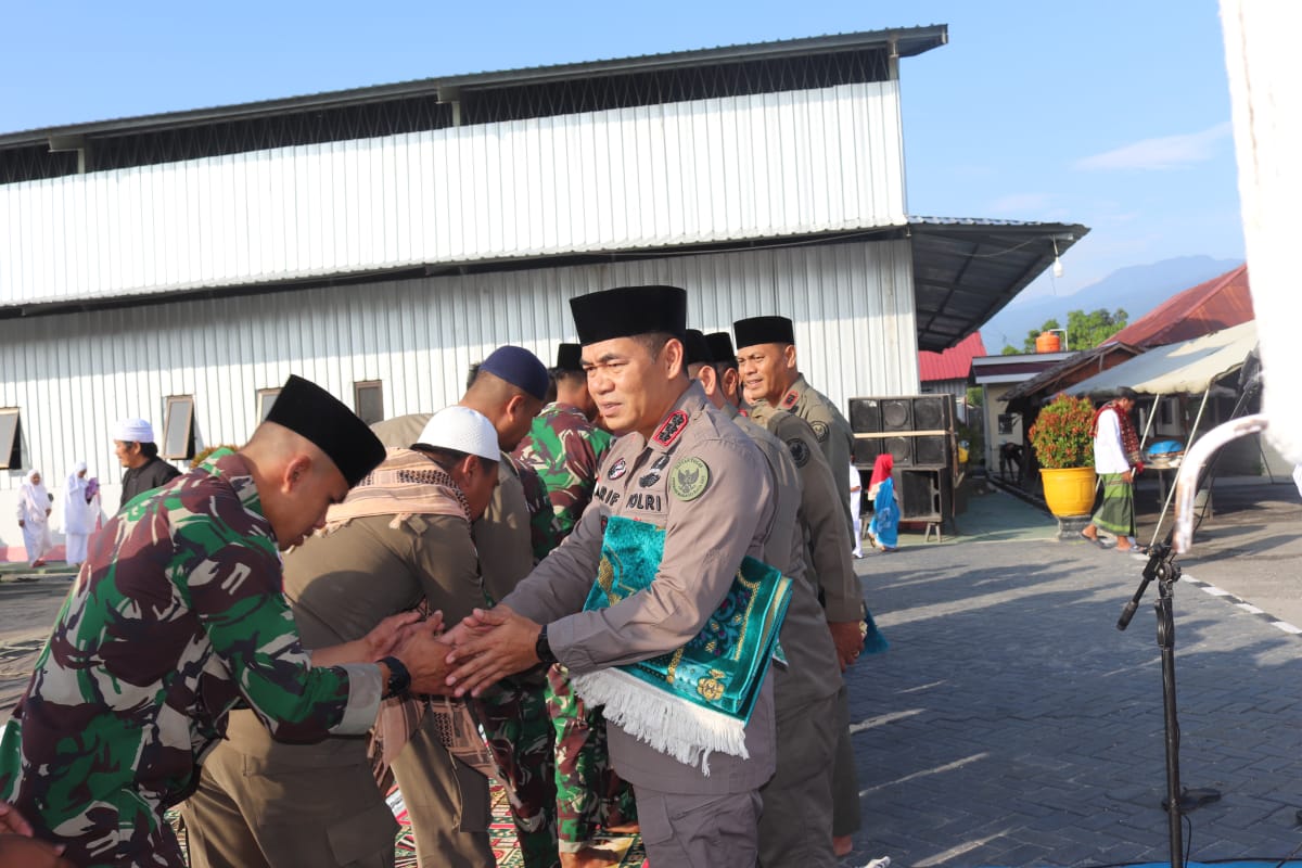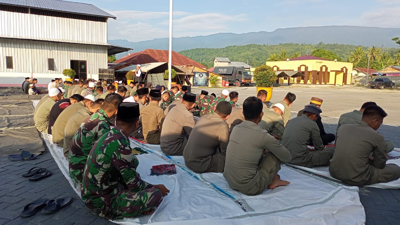 shalat Idul Fitri yang di pimpin oleh ustad Farhan selaku imam ini dihadiri Kaops Madagoraya Kombespol Arif Budiman, S.I.K,M.H, PJU Satgas OPS Madagoraya, dan Personil TNI dan Polri OPS Madagoraya 2022.