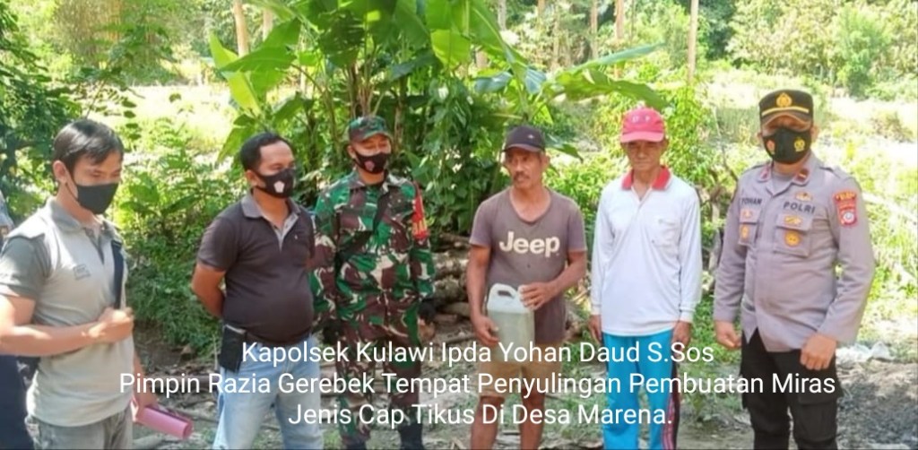 Anggota piket Polsek Kulawi yang dipimpin oleh Kapolsek Kulawi Ipda Yohan Daud, S.Sos berhasil menggerebek tempat penyulingan/pembuatan minuman keras jenis cap tikus. Selasa (3/5/2022) siang.