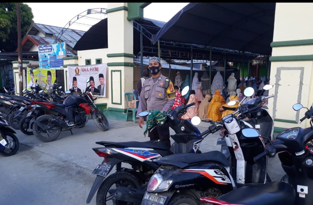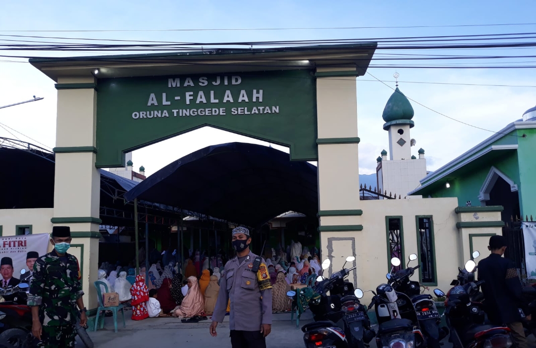 Dalam menjalin keakraban antara Polri dengan Masyarakat Bhabinkamtibmas dan Babinsa Tinggede Selatan Bripka Syafrudin dan Sertu Arfa Lakukan pengamanan sholat idul fitri 1443 H di Masjid Al – Falah Desa Tinggede selatan Kec.Marawola, Senin (02/05/2022).