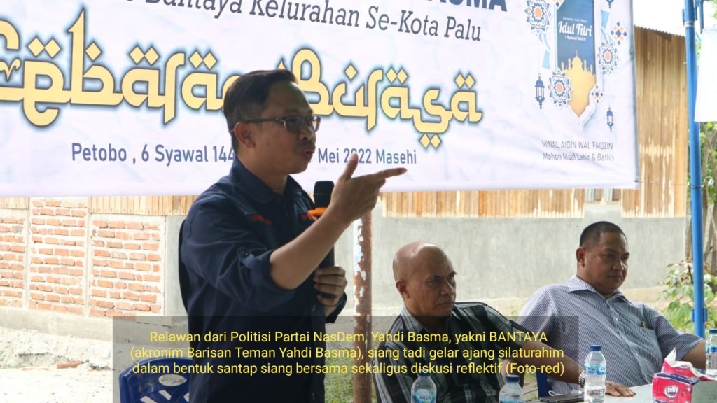 Salah satu kelompok politik di Kota Palu yang dikenal sebagai Relawan dari Politisi Partai NasDem, Yahdi Basma SH, yakni BANTAYA (akronim Barisan Teman Yahdi Basma), siang tadi gelar ajang silaturahim dalam bentuk santap siang bersama sekaligus diskusi reflektif.