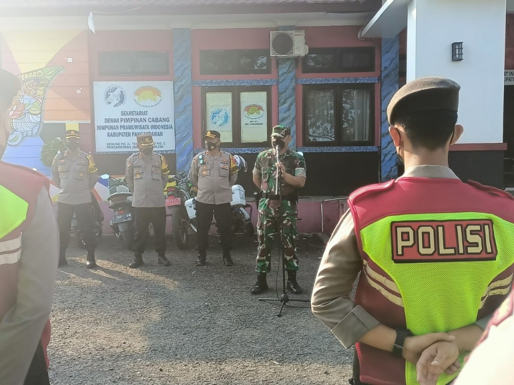 Turut hadir pada apel ini, Kapolres Pangandaran AKBP Hidayat, S.I.K., S.H, Wakapolres Pangandaran Kompol Arisbaya, Kabagops Polres Pangandaran Kompol Dodi A, Danramil 1320/Parigi Kapten Inf Erwin Firdaus, Kasubag Ren Polres Pangandaran Akp Wahyu H, Kasatlantas Polres Pangandaran Iptu Deni S