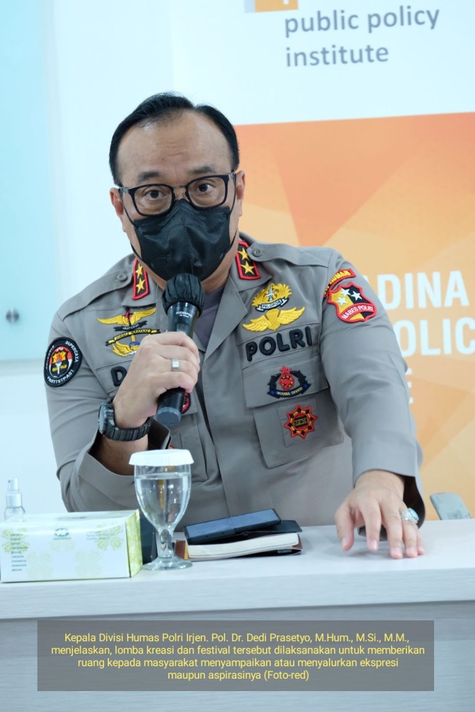 Kepala Divisi Humas Polri Irjen. Pol. Dr. Dedi Prasetyo, M.Hum., M.Si., M.M., menjelaskan, lomba kreasi dan festival tersebut dilaksanakan untuk memberikan ruang kepada masyarakat menyampaikan atau menyalurkan ekspresi maupun aspirasinya.