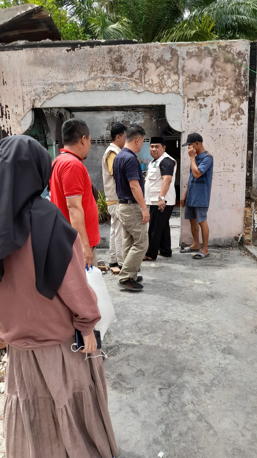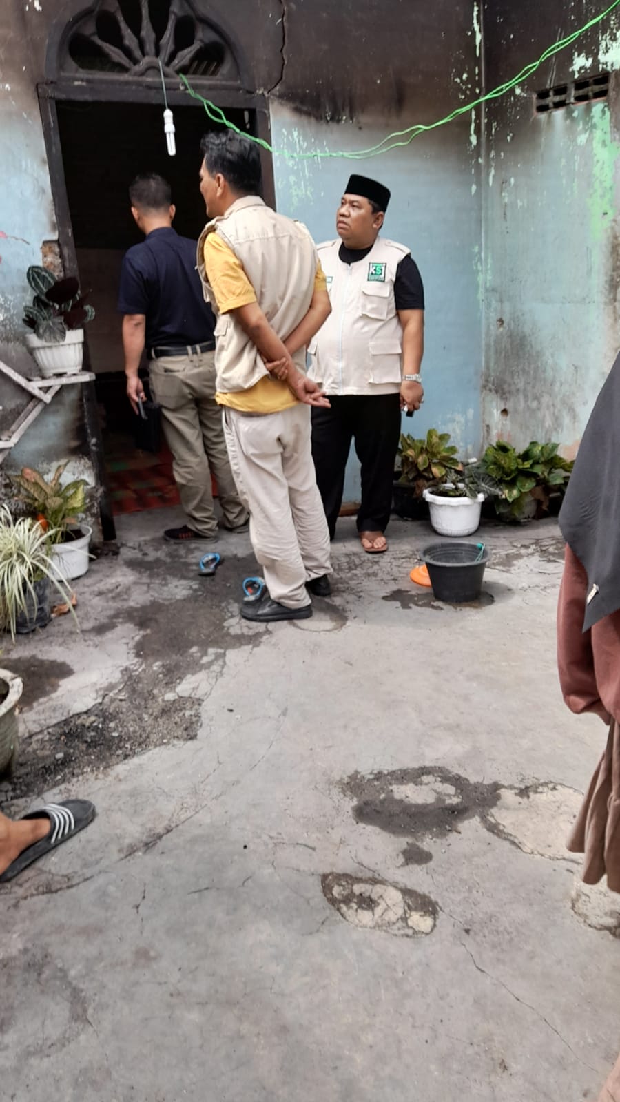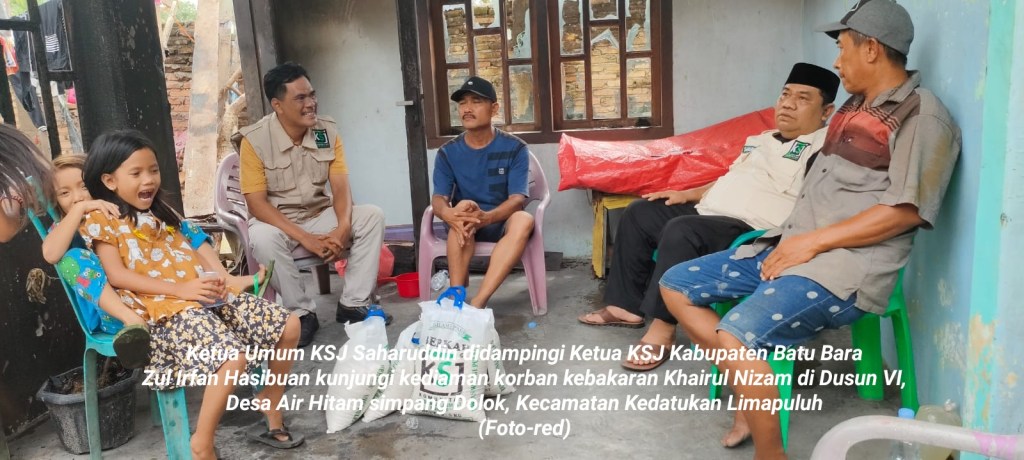Ketua Umum KSJ Saharuddin didampingi Ketua KSJ Kabupaten Batu Bara Zul Irfan Hasibuan kunjungi kediaman korban kebakaran Khairul Nizam di Dusun VI, Desa Air Hitam simpang Dolok, Kecamatan Kedatukan Limapuluh.