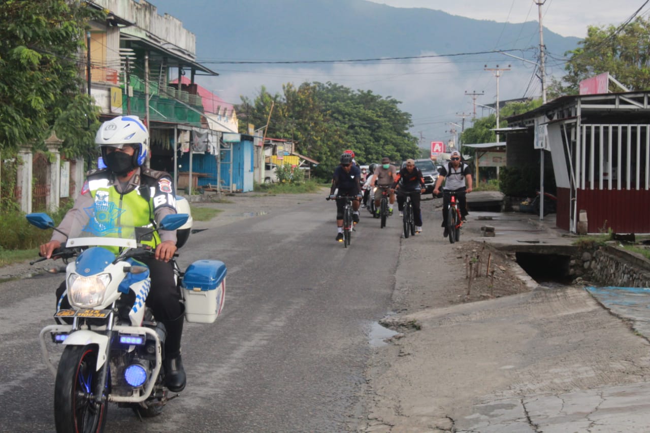 Pagi yang cerah, Kapolres Sigi AKBP Reja A. Simanjuntak, S.H., S.I.K., M.H. diantara kepadatan kedinasan Kepolisian menyempatkan diri untuk lebih dekat dengan anggota yang dikemas dengan bersepeda santai bersama. Dengan rute star dari pos lalu lintas karajalemba dan finish di mako polres sigi, Jumat, (13/05/2022).