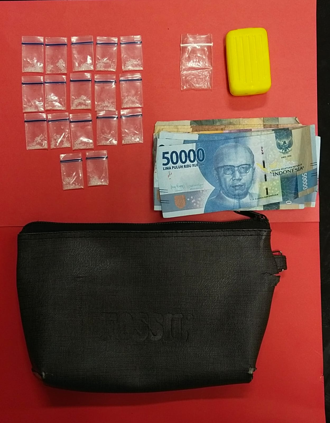 Kasat narkoba polres sigi AKP Janni Sagala S.sos menuturkan bahwa saat dilakukan penggeledahan petugas menemukan barang bukti berupa 17 Paket yang di duga sabu dengan berat bruto 3,68 gram yang dikemas di dalam koper mainan anak milik lk. RS