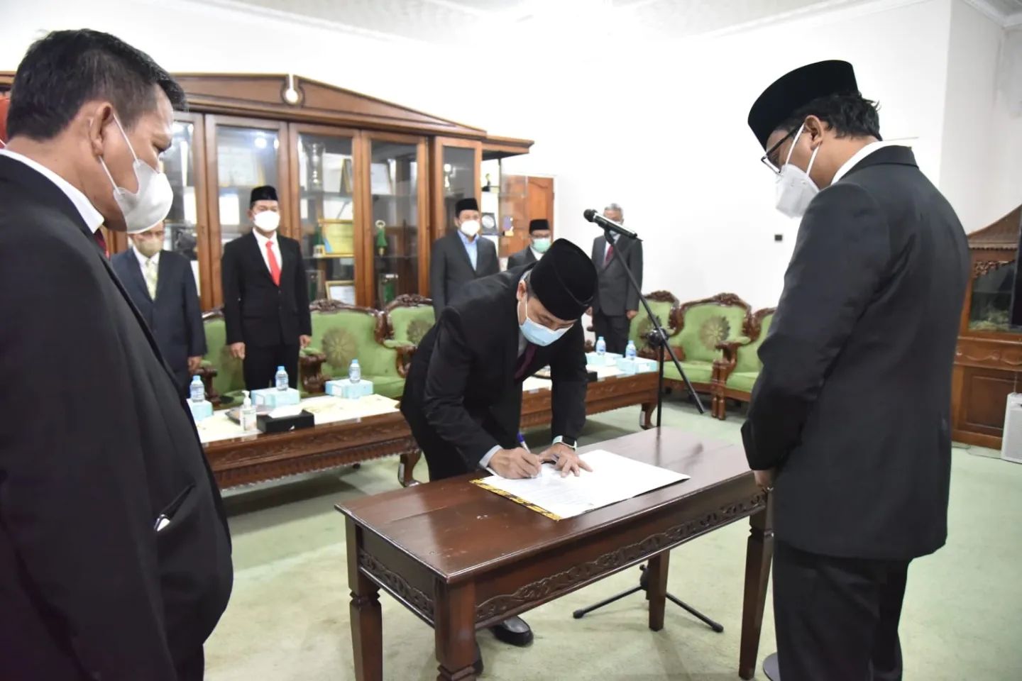 Pelantikan Andjar Surjadianto sebagai Pj. Sekda Sidoarjo dilakukan malam kemarin, Kamis, (12/4), oleh Bupati Sidoarjo Ahmad Muhdlor di kantor Bupati Sidoarjo jalan Gubernur Suryo.
