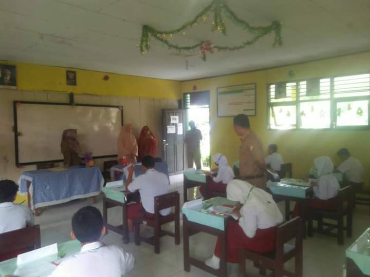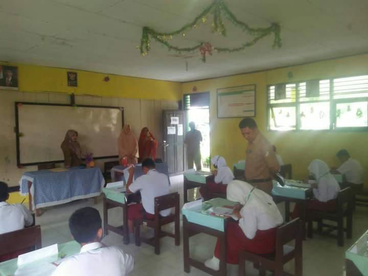 Kepala bidang (kabid) tingkat SD Abd. Fatah L, S.Pd memantau jalannya ujian di SD Negeri 2 Marowo didampingi pengawas SD Kecamatan Ulubongka Mas’ud, S.Pd.SD.