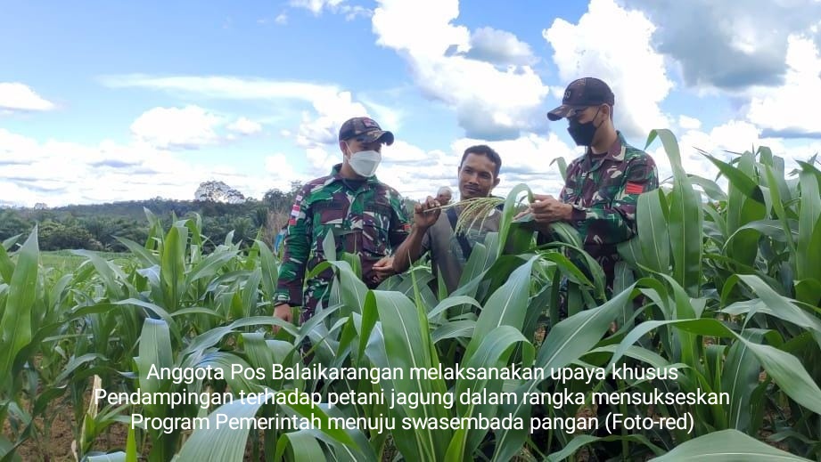 Anggota Pos Balaikarangan melaksanakan upaya khusus pendampingan terhadap petani jagung dalam rangka mensukseskan program Pemerintah menuju swasembada pangan. Kegiatan yang dilakukan berupa edukasi mengenai pemeliharaan tanaman jagung berkualitas dilahan jagung Hibrida Bisi 18 seluas 1/2 Ha milik Bapak Komar Bakrie anggota kelompok tani Desa Kenaman, Kec. Sekayam.