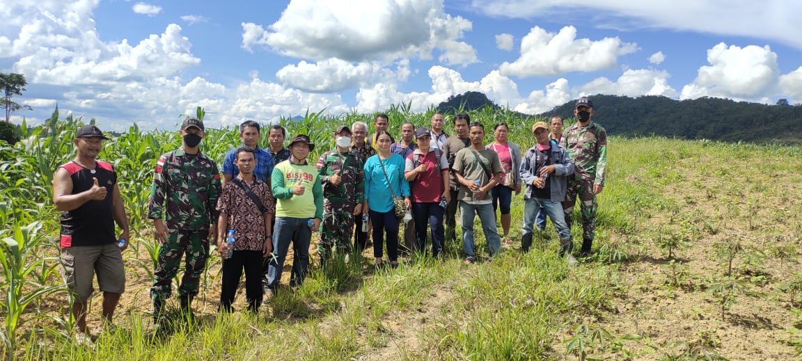 Guna mendukung ketahanan pangan di wilayah perbatasan Kalimantan Barat, Satgas Pamtas Yonif Mekanis 643/Wns melakukan pendampingan penanaman dan perawatan tanaman jagung (Zae Mays) di Dusun Lomour 2, Desa Kenaman, Kec. Sekayam, Kab. Sanggau.