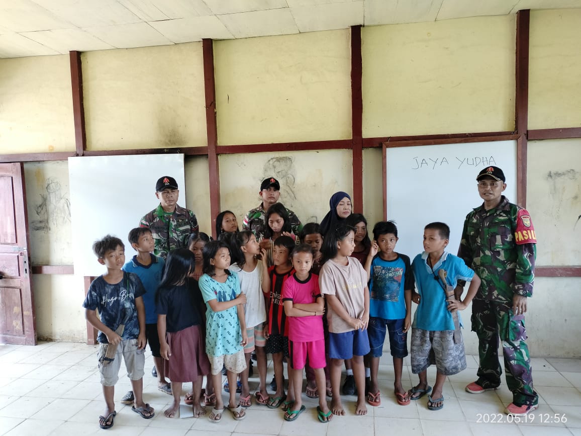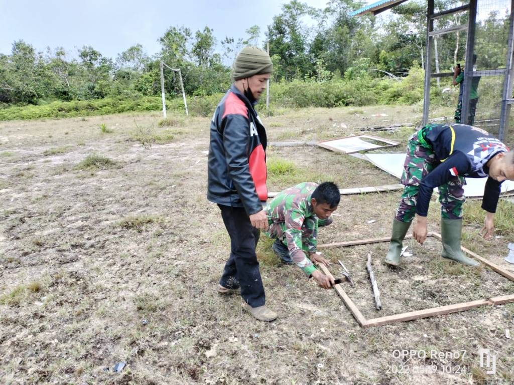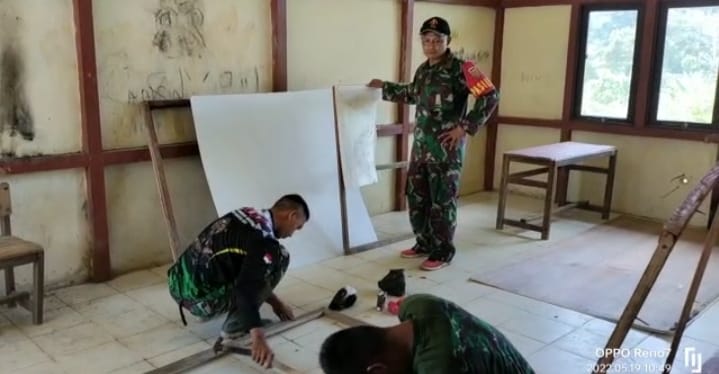 Anggota Satgas pos kout membantu pihak sekolah SDN 26 dalam pembuatan papan tulis baru sejumlah 6 buah, karena yang lama sudah banyak rusak”, ucapannya.