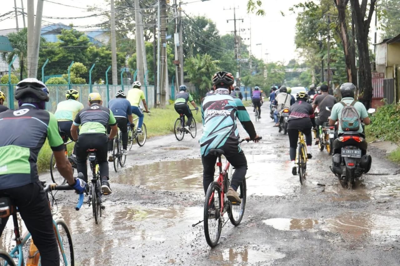 Gus Muhdlor didampingi Plt. Kepala PU Bina Marga dan SDA Dwi Saptono berangkat gowes pagi-pagi dari rumah dinas bupati menuju kawasan Buduran.