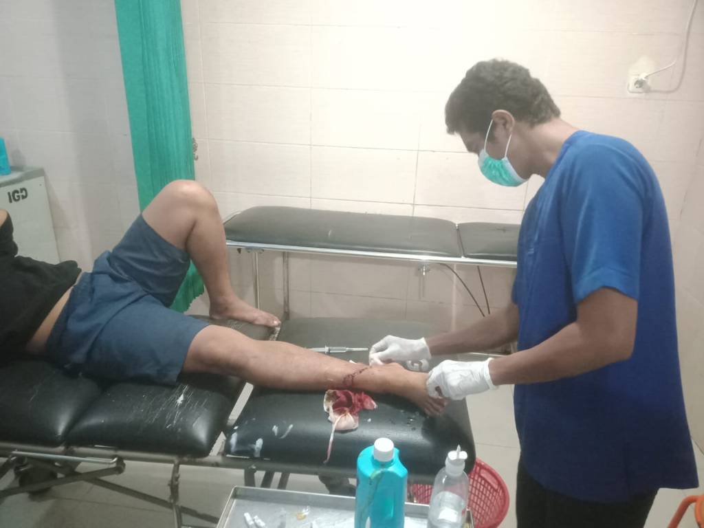 Akibat kejadian tersebut korban di duga mengalami luka tusuk di bagian perut, kaki dan tangan serta robek bagian kepala sehingga menyebabkan korban masih di rawat nginap di RSUD Dompu, beber Adhar sapaan akrab Kasat Reskrim Polres Dompu.