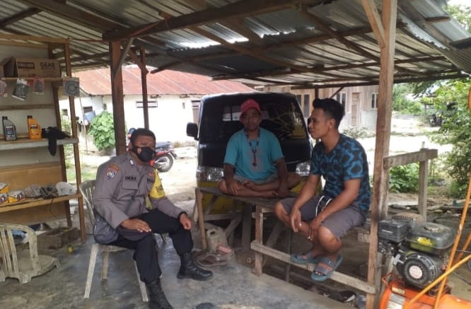 Bhabinkamtibmas Desa Jono Oge, Polsek Biromaru, Polres Sigi, Bripka Indra Wahyudi melaksanakan sambang di Dusun 3, Desa Jono Oge, Kecamatan Sigi Biromaru, Kabuoaten Sigi, Selasa (24/05/2022).