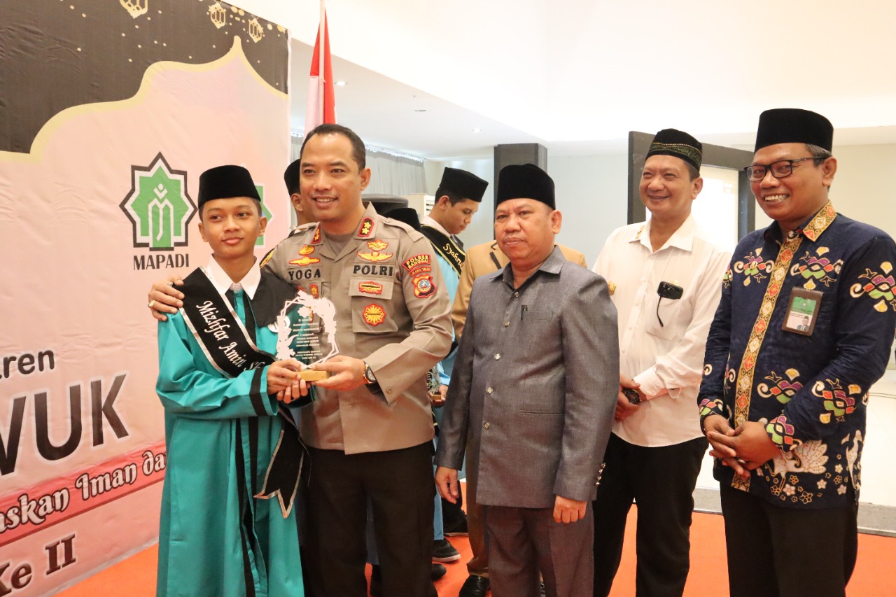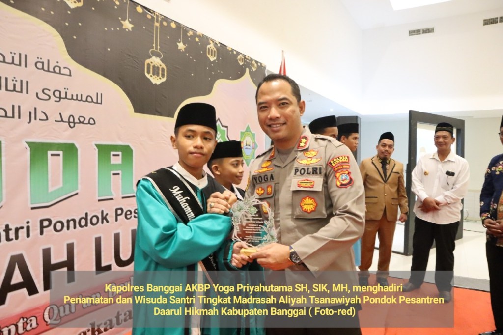Kapolres Banggai AKBP Yoga Priyahutama SH, SIK, MH, menghadiri Penamatan dan Wisuda Santri Tingkat Madrasah Aliyah Tsanawiyah Pondok Pesantren (Ponpes) Daarul Hikmah Kabupaten Banggai di Ballroom Hotel Esterala Luwuk, Rabu (25/5/2022).