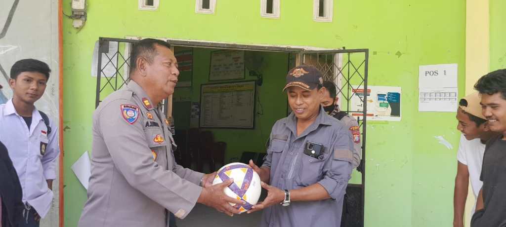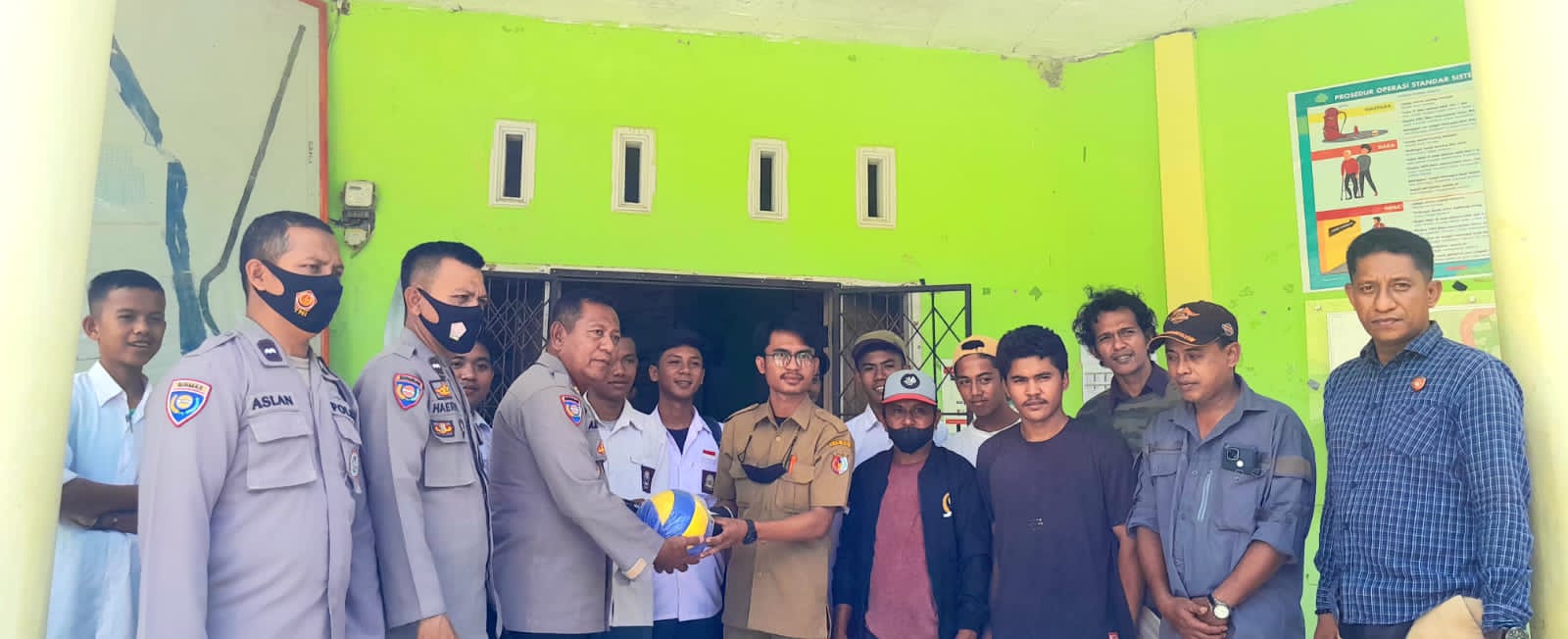 Kasat Binmas Polres Sigi Iptu Ashari Lumuan kembali menyerahkan bantuan sarana kontak alat Olahraga kepada Pemuda dan masyarakat Desa Bangga Kecamatan Dolo Selatan, Selasa (24/5/2022) Siang.
