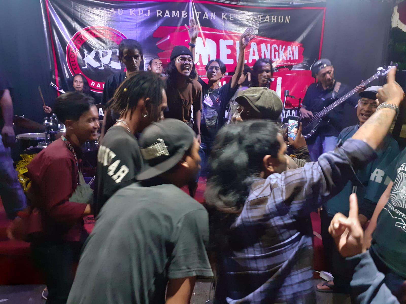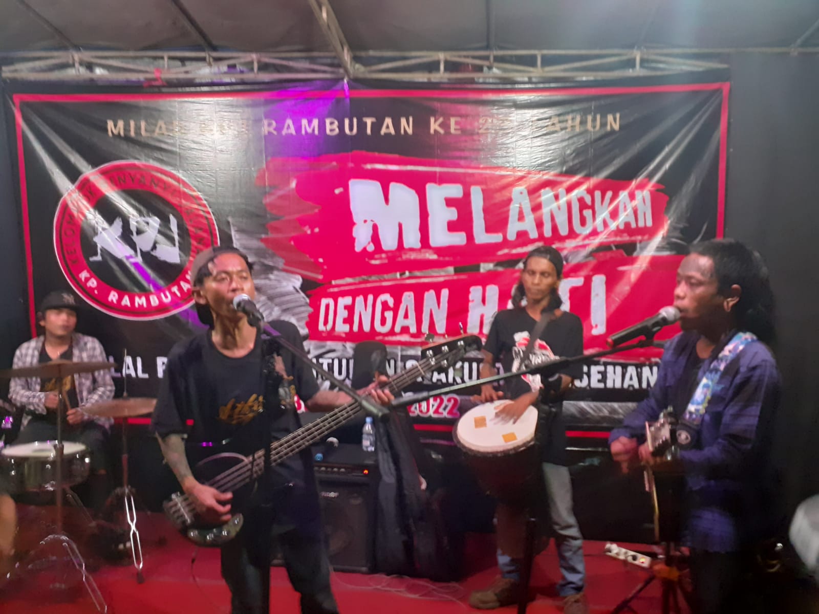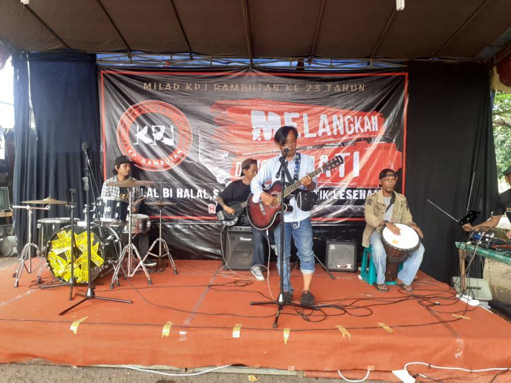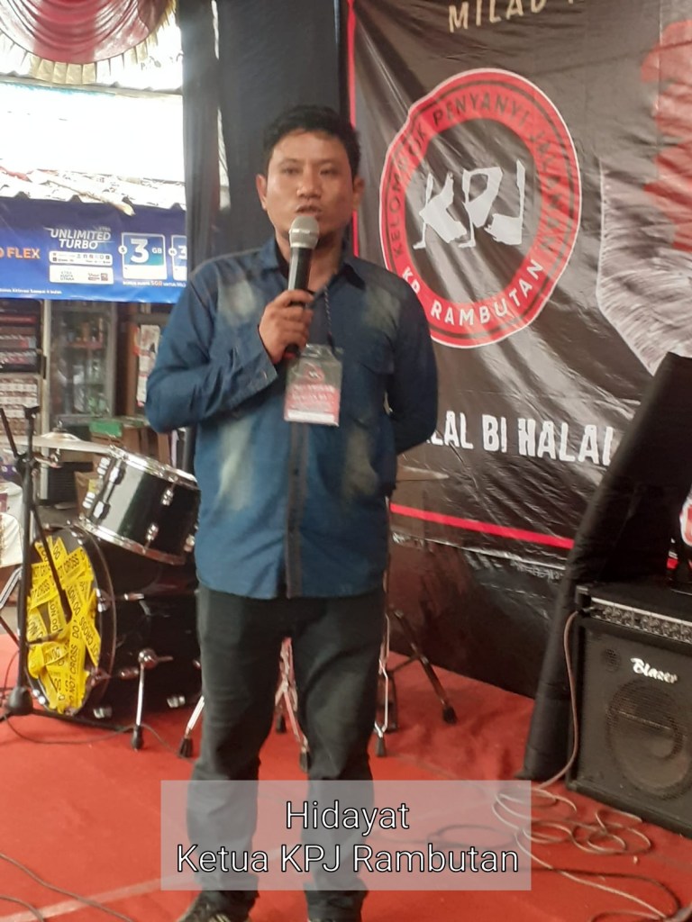 Milad Kelompok Penyanyi Jalanan (KPJ) Rambutan Ke-23 dengan tema : Melangkah Dengan Hati— yang dirangkai dengan halal bi halal, santunan yatim piatu dan akustik lesehan, digelar di Lapangan Parkir Pujasera, Terminal Kampung Rambutan, Jakarta Timur, Rabu (25/05/2022).