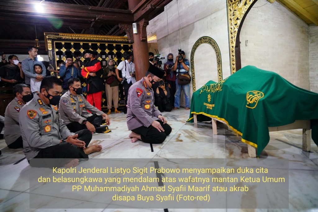 Kapolri Jenderal Listyo Sigit Prabowo mewakili keluarga besar institusi Polri menyampaikan duka cita dan belasungkawa yang mendalam atas wafatnya mantan Ketua Umum PP Muhammadiyah Ahmad Syafii Maarif atau akrab disapa Buya Syafii.