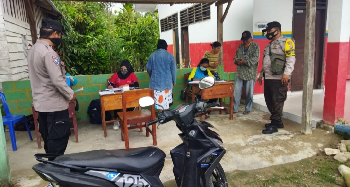 Bhabinkamtibmas Polsek Palolo Polres Sigi, melaksanakan giat monitoring sekaligus pengamanan kegiatan Vaksinasi Covid-19 yang di peruntukan kepada tenaga pengajar Guru dan warga yang bertempat di Sekolah Dasar Negeri Berdikari Kecamatan Palolo, Kabupaten Sigi, Jum’at (27/05/2022)
