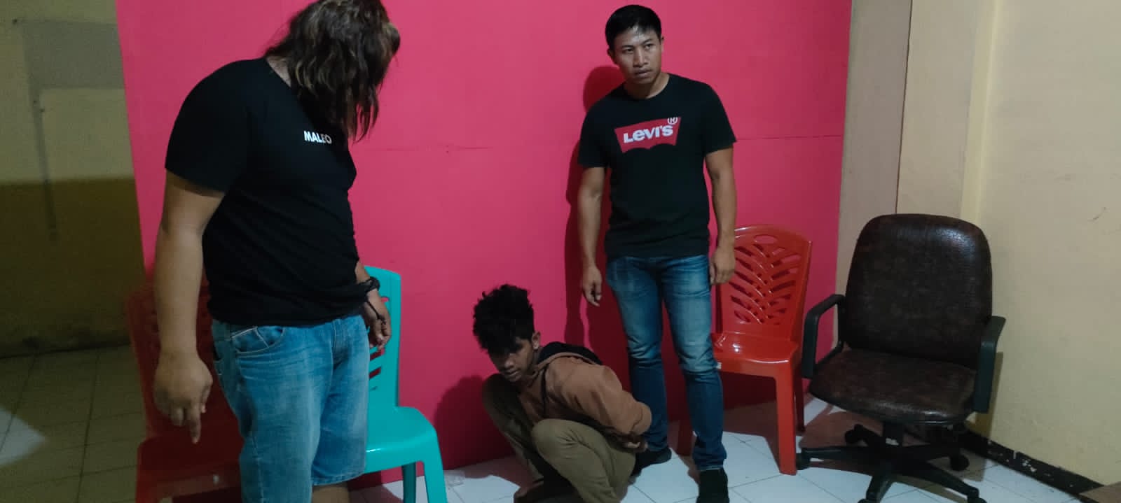 Saat Kasat Reskrim bersama Team Gabungan mengetuk pintu kamar, pelaku belum merespon dan setelah kembali mengetuk yaitu yang ke 2 kalinya pelaku membuka pintu dan berusaha melarikan diri namun Team berhasil mengamankan terduga pelaku yang setelah dilakukan interogasi awal terduga pelaku mengakui perbuatannya yaitu telah melakukan tindak pidana pencurian di Desa Patukuki Kec. Peling Tengah.Bahwa terduga pelaku mengaku melakukan pencurian tsb.