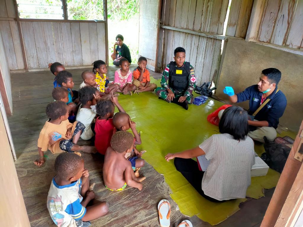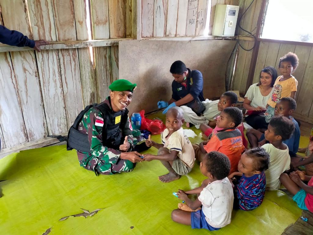 Untuk memutus mata rantai penularan penyakit dan mencegah terjadinya kecacatan akibat penyakit kaki gajah (Filarsis), Satgas Pamtas Yonif 126/KC Pos Yuruf bekerja sama dengan Dinkes Provinsi Papua mendatangi rumah-rumah warga perbatasan untuk mensosialisasi sekaligus memeriksa kesehatan anak-anak Kampung Yuruf, Distrik Yaffi, Kabupaten Keerom.