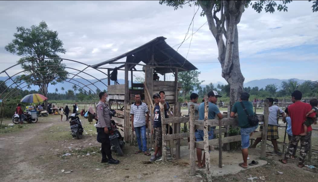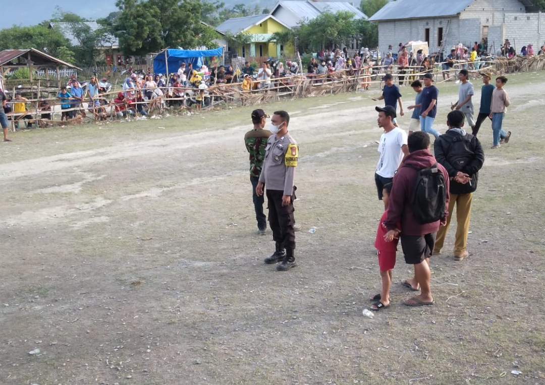 Bhabinkamtibmas Polsek Marawola Polres Sigi melaksanakan pengamanan kegiatan Karapan Sapi di desa Binaan dalam rangka hajat warga desa Binangga kecamatan Marawola kabupaten Sigi, Senin, (30/05/2022).