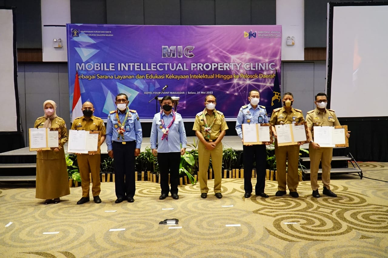 Kegiatan ini dirangkaikan dengan penandatanganan kesepakatan bersama di bidang Kekayaan Intelektual antara Kakanwil Kemenkumham Sulsel dengan Walikota Makassar, dan perjanjian kerjasama dengan lima Kepala OPD serta perguruan tinggi di Hotel Four Point Makassar, Selasa (31/05).