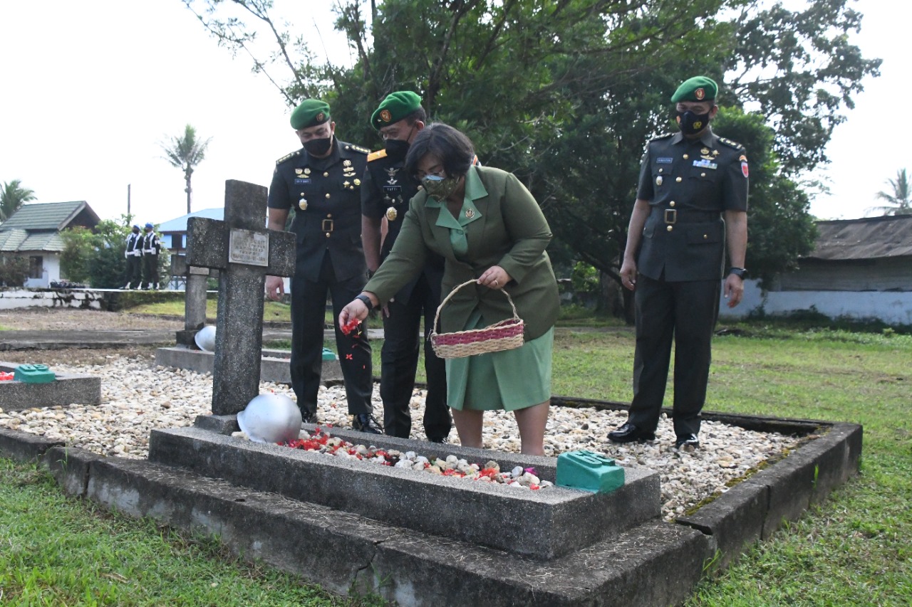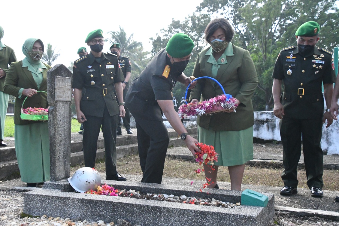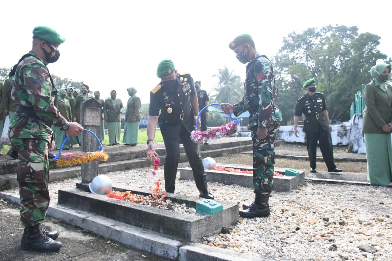 Memperingati HUT ke-62 Korem 143/HO, Komandan Korem 143/HO memimpin langsung ziarah rombongan di Taman Makam Pahlawan (TMP) Watubangga Jl. Poros Bandara Haluoleo Kel. Baruga, Kec. Baruga Kota Kendari .