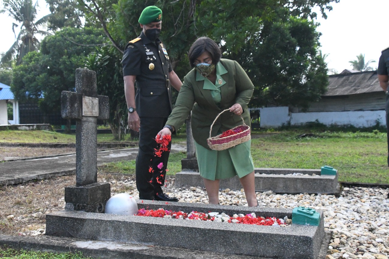 “Selain peletakan karangan bunga dilaksanakan juga kegiatan tabur bunga yang dimana dilakukan secara simbolis oleh Danrem 143/HO yang didampingi Ketua Persit Kartika Chandra Kirana Koorcabrem PD XIV Hasanuddin Ny. Arin Yufti Senjaya beserta rombongan,”ujar rusmin