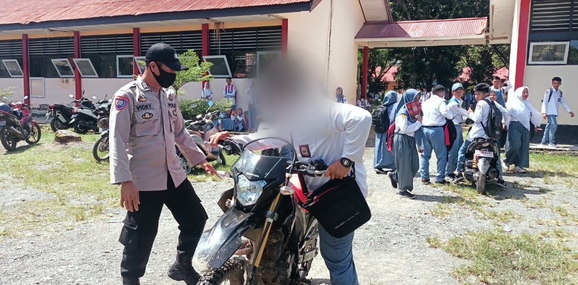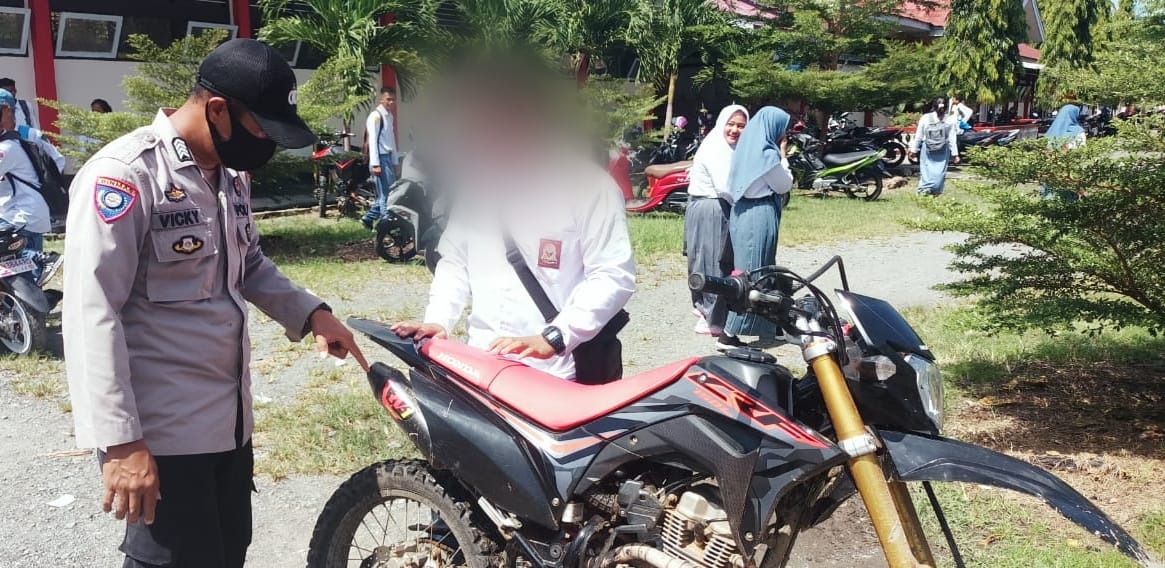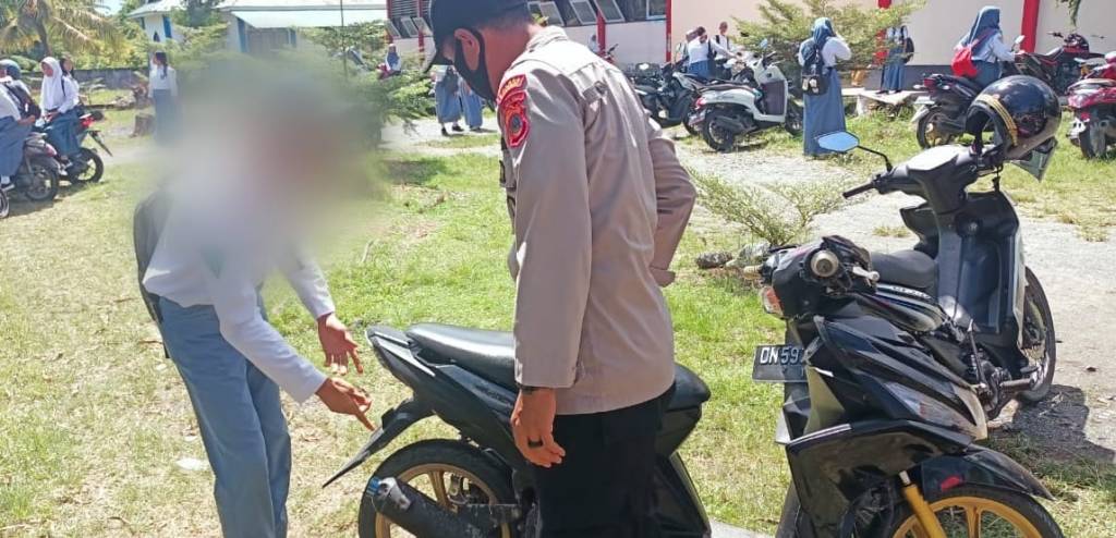 Polisi menggelar operasi kendaraan bermotor dengan sasaran knalpot brong di SMA Negeri I Bunta, Kelurahan Kalaka, Kecamatan Bunta, Kabupaten Banggai, Selasa (31/5/2022).