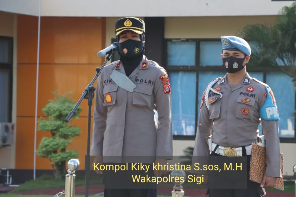 Wakapolres Sigi Kompol Kiky khristina S.sos, M.H memimpin Apel pagi yang dilaksanakan di halaman Apel mapolres Sigi. Kamis (02/6/22)