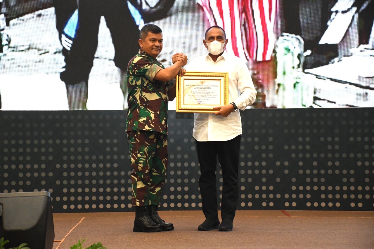 Turut hadir di acara, antara lain Danlantamal I Belawan, Pangkosek Hanudnas III Medan, Kabinda Sumut, para PJU Kodam I/BB dan Poldasu, serta pimpinan OPD Pemda se Sumut.