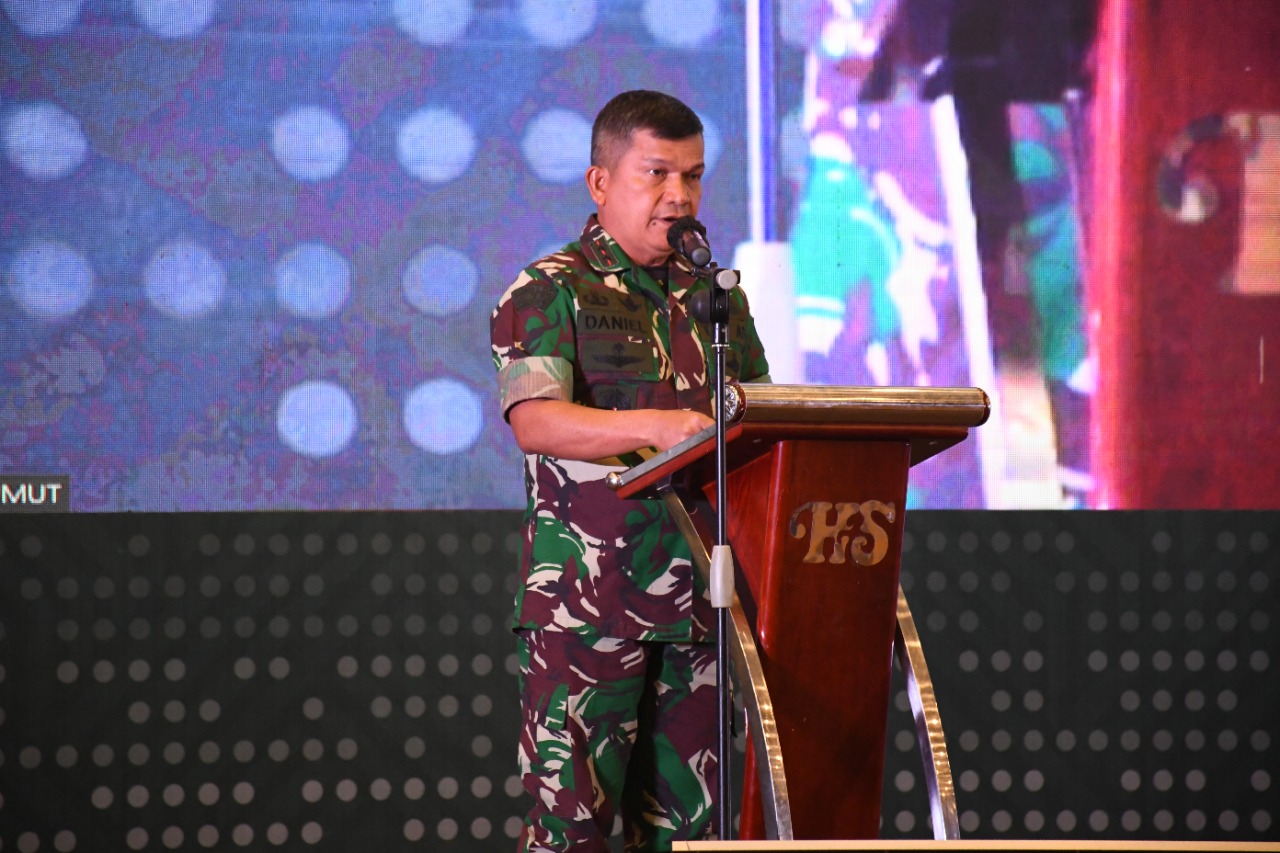 “Dukungan itu kita wujudkan melalui program pembinaan teritorial yang merupakan fungsi utama TNI AD. Seperti bakti TNI (TMMD), komunikasi sosial dan ketahanan wilayah,” ucap Pangdam saat tampil sebagai narasumber pada kegiatan tersebut , di Santika Premiere Dyandra & Convention, Jl Kapten Maulana Lubis No.7 Medan, Selasa (31/5/2022).