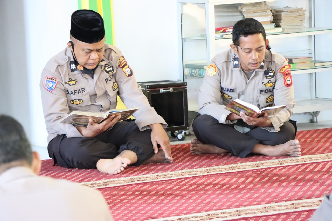Sementara itu, Binrohtal ini di awali dengan membaca surah Yasin dan kultum dipimpin Aiptu Muh. Safar, S.Pd.