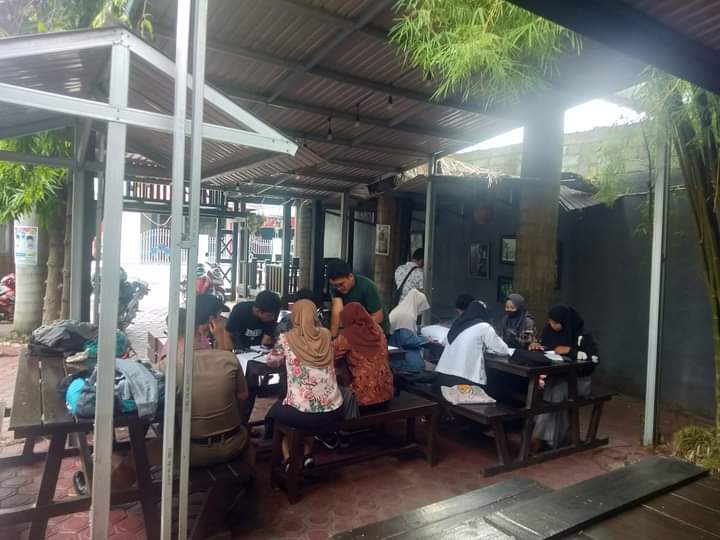 Mahasiswa PSDKU Untad Touna jurusan ekonomi mengerjakan tugas diluar kampus ini merupakan salah satu cara menghilangkan rasa jenuh.