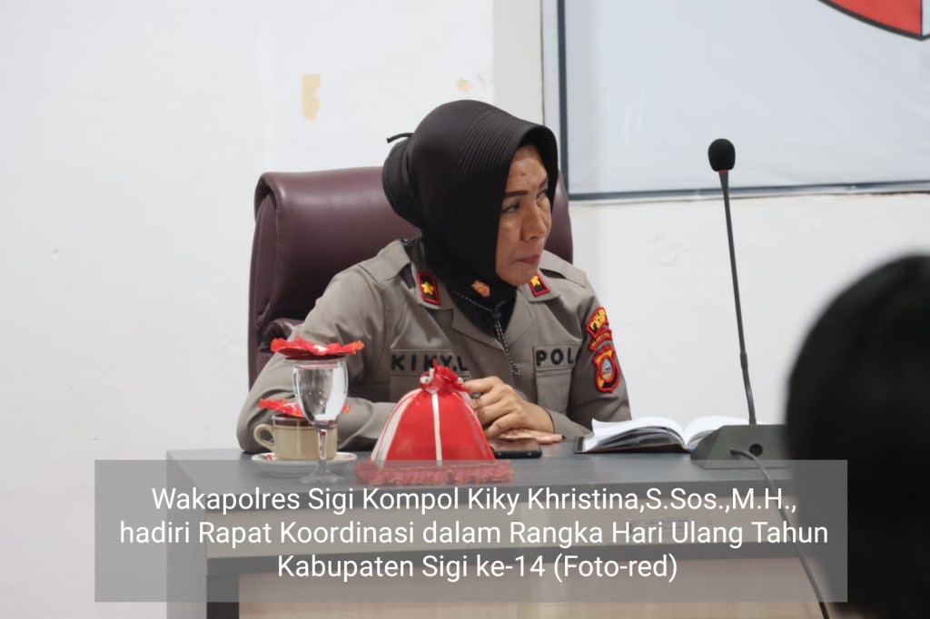 Betempat di Aula Kantor Bupati Sigi, Hari ini kamis (02/06/2022) pukul 09.00 wita, Wakapolres Sigi Kompol Kiky Khristina,S.Sos.,M.H., menghadiri Rapat Koordinasi dalam Rangka Menyambut Hari Ulang Tahun Kabupaten Sigi ke-14 yang dipimpin oleh Sekretaris Daerah Kabupaten Sigi Muh. Basir,S.E.,M.P.