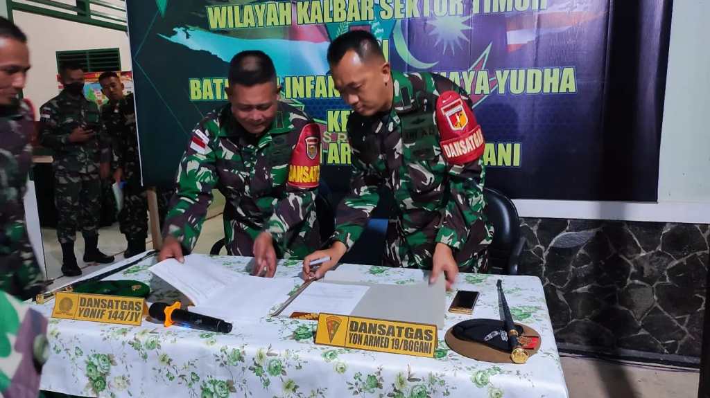 Serah terima alih Kodal Satgas Operasi Pamtas Ri-Malaysia dari Yonif 144/Jaya Yudha kepada Batalyon pengganti Yonarmed 19/105 Trk Bogani yang bertempat di seluruh jajaran Pos Pamtas Ri-Malaysia. (Sabtu, 4 Juni 2022)