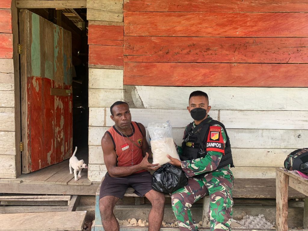 ”Pemberian Sembako ini merupakan wujud rasa kepedulian personel Satgas TNI Pos KM 76 kepada warga guna sedikit meringankan beban ekonomi masyarakat,” terangnya.