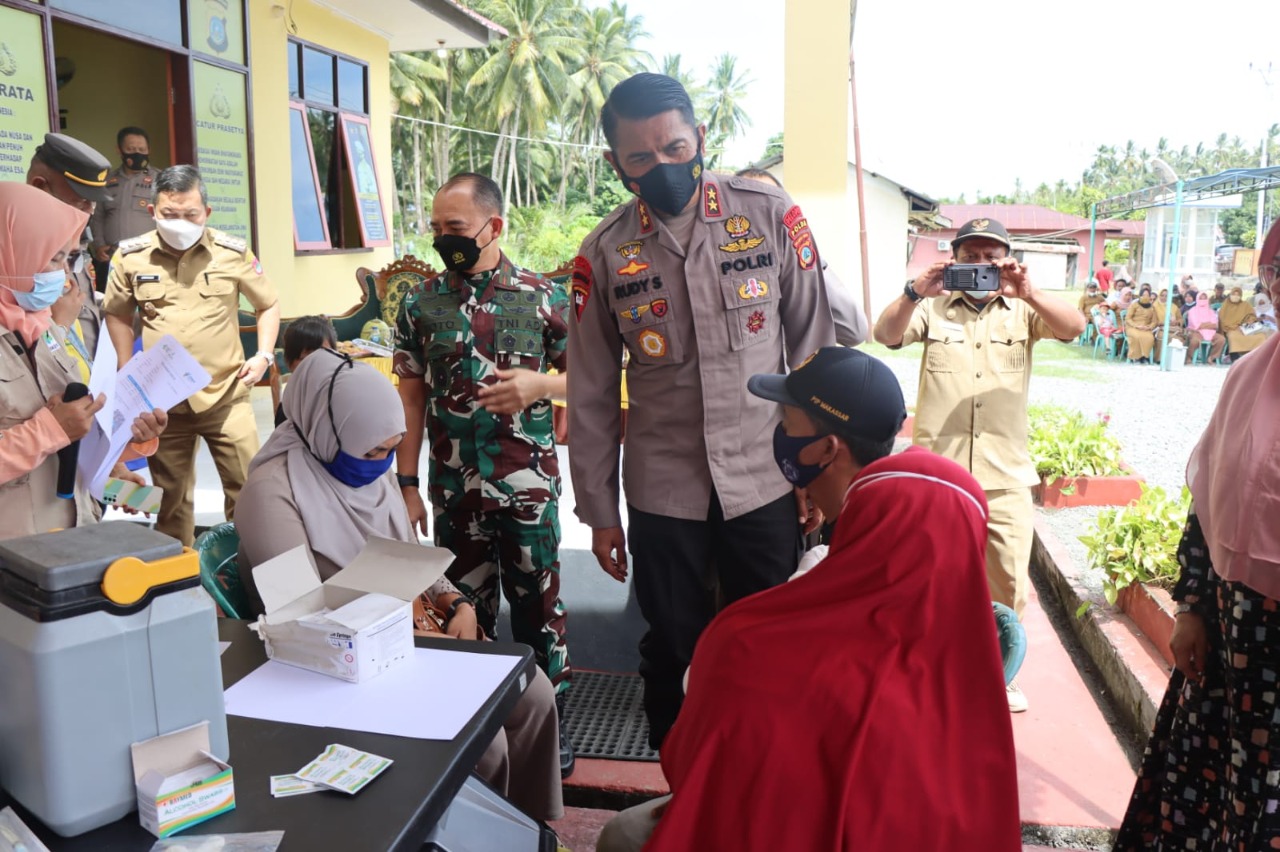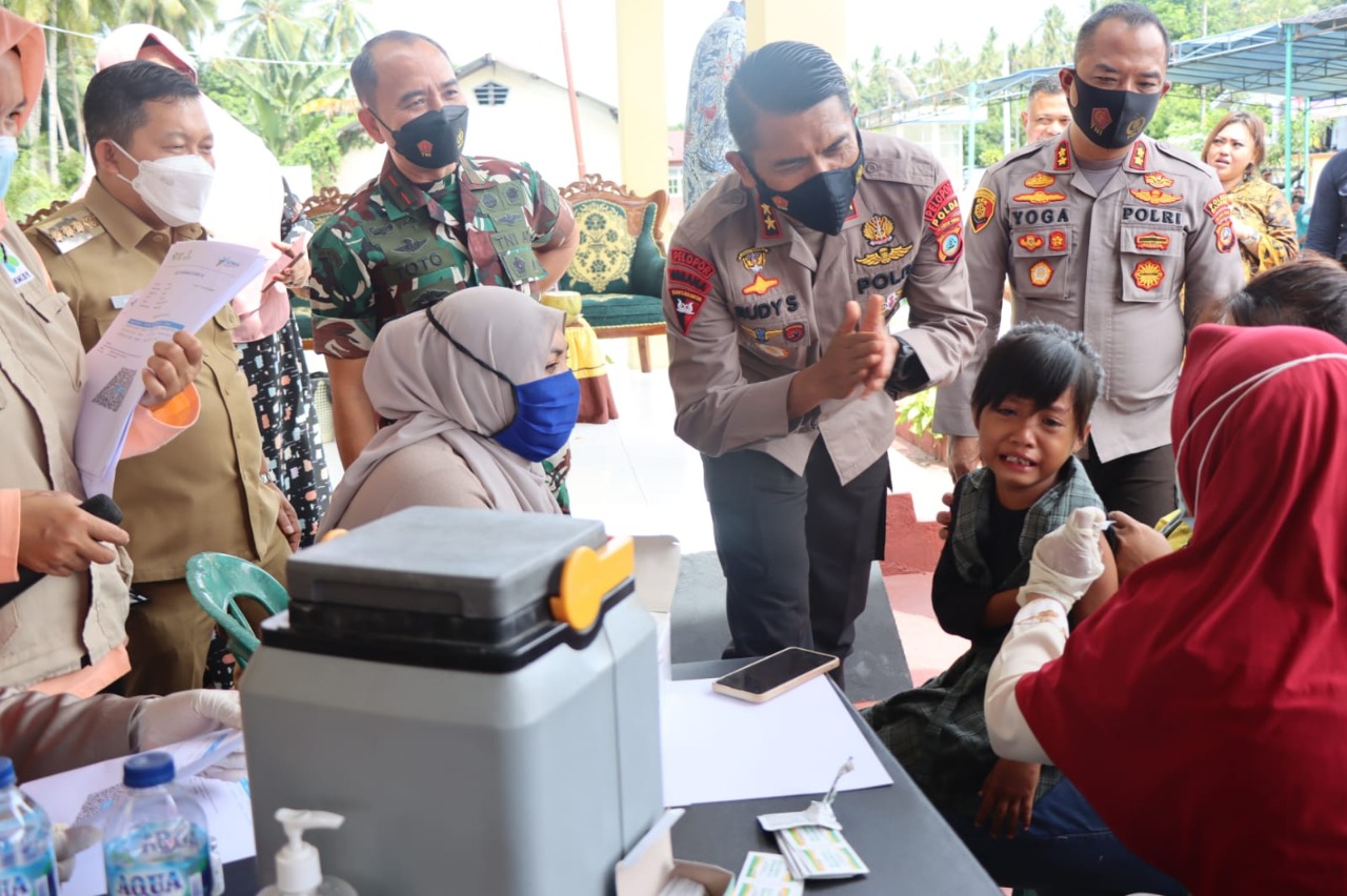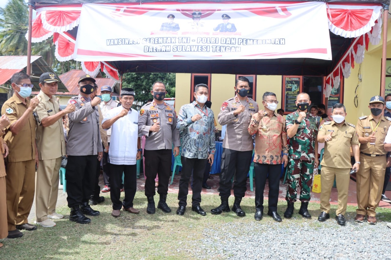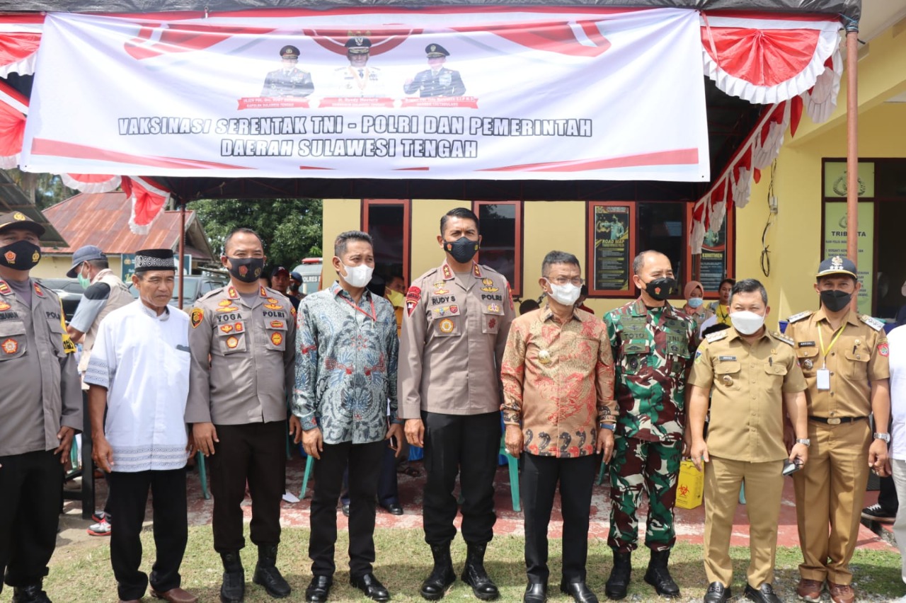 News Lintas Sulawesi/Kapolres Banggai AKBP Yoga Priyahutama SH,SIK, MH, menghadiri kegiatan Vaksinasi Serentak TNI-Polri dan Pemerintah Provinsi Sulawesi Tengah (Sulteng) di Mapolsek Kintom, Selasa (7/6/2022).