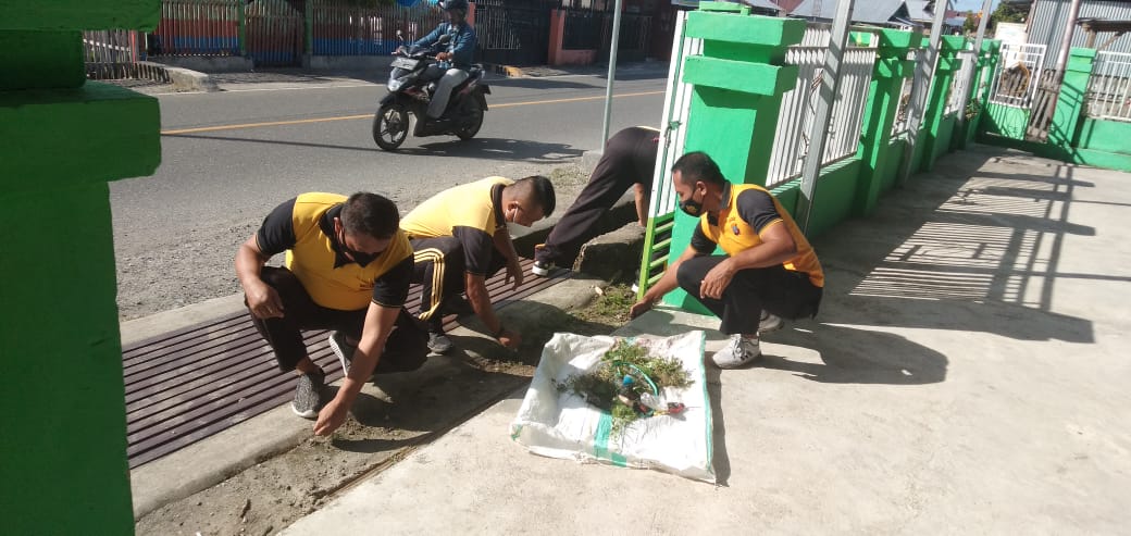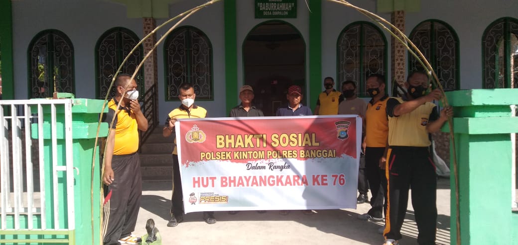 Seperti yang dilakukan jajaran Polsek Kintom yang dipimpin Kapolsek Iptu Raden Hermawan SE melaksanakan aksi bersih-bersih di Masjid Baburrahma Desa Dimpalon, Kecamatan Kintom, Kabupaten Banggai, Jumat (10/6/2022).