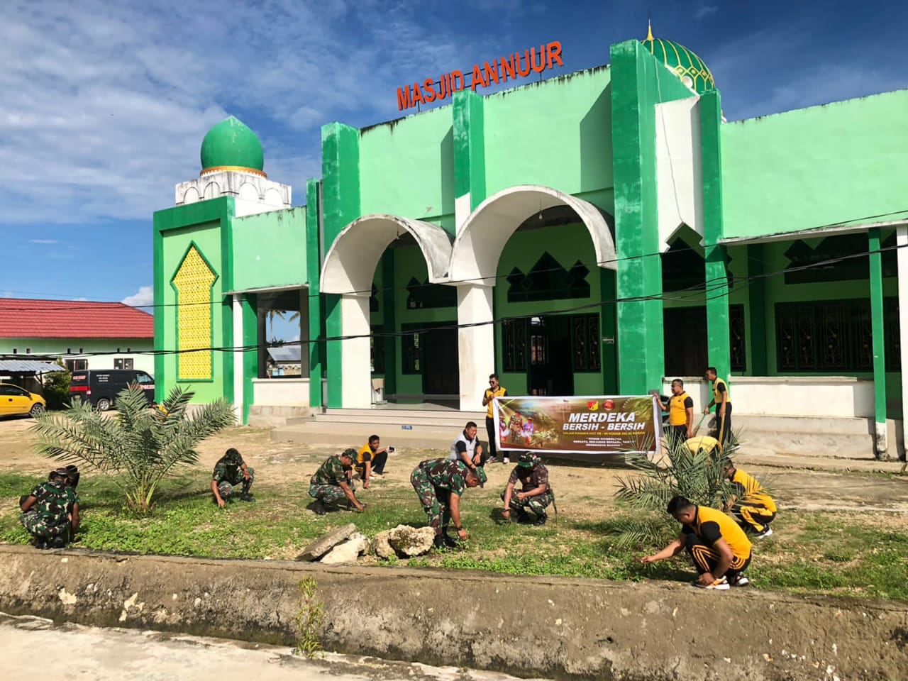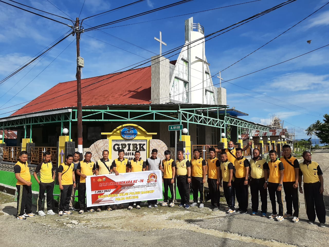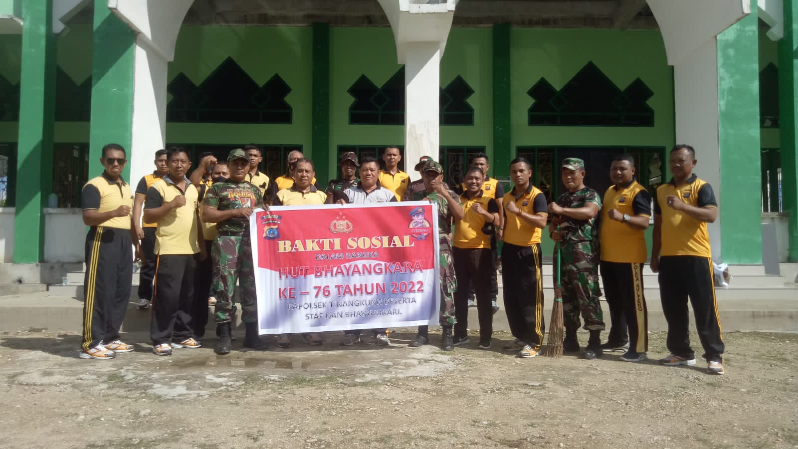 Sambut hari Bhayangkara ke 76 Tahun 2022 Polres Bangkep Bersama Tni dan masyarakat melaksanakan kegiatan bakti sosial membersihkan lingkungan tempat ibadah, Jumat pagi (10/06/2022).