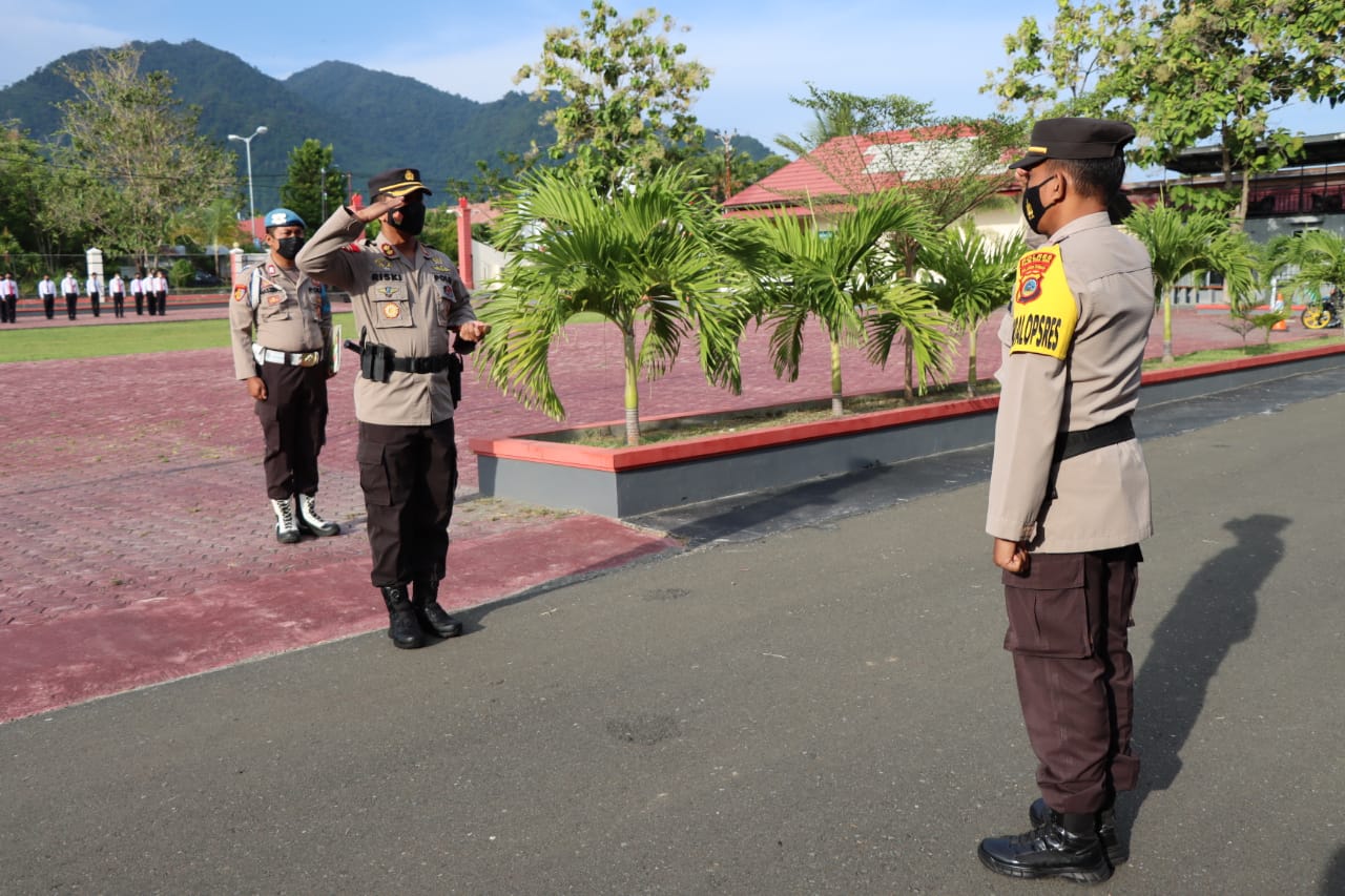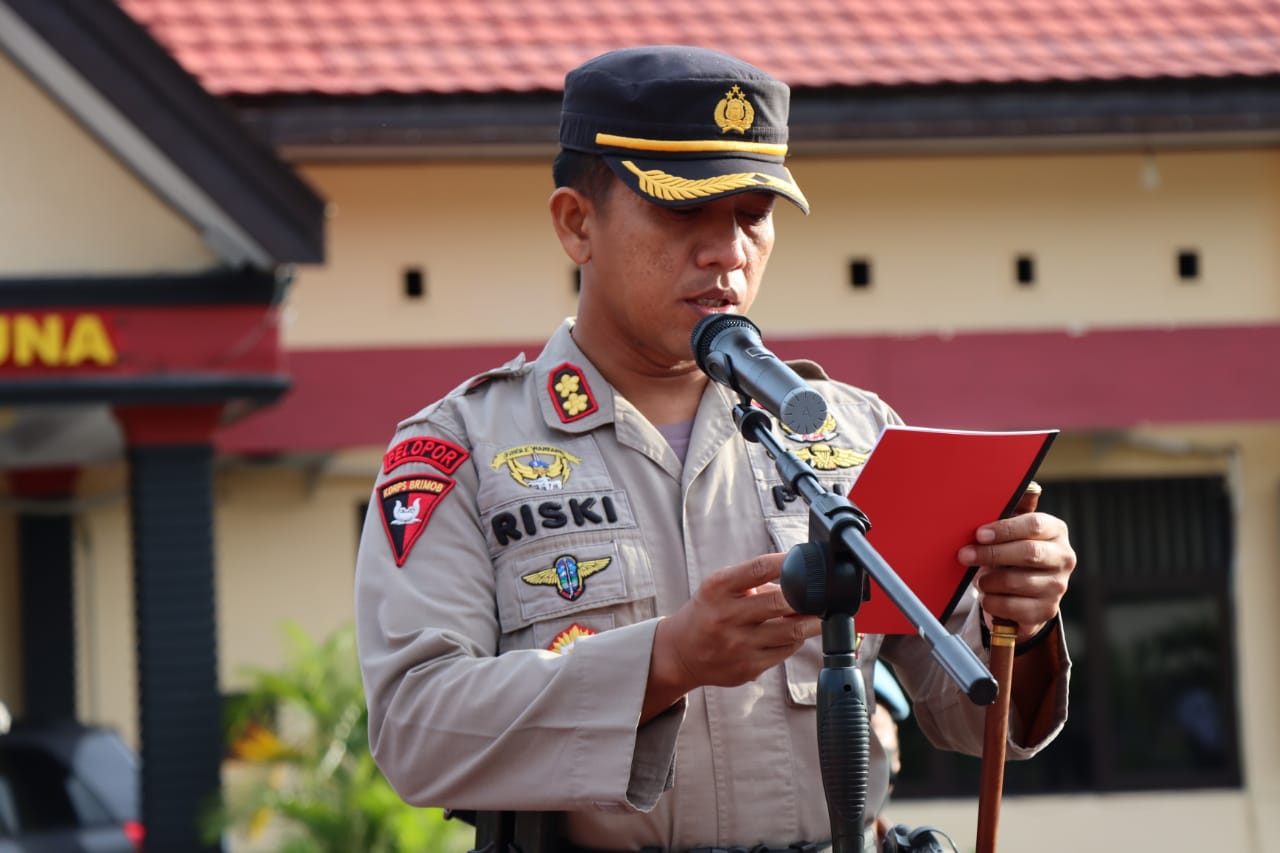 Kapolres Touna, AKBP Riski Fara Sandhy, S.I.K., M.I.K., memimpin apel gelar pasukan Operasi Patuh Tinombala 2022, di halaman Apel Mapolres Touna, Senin (13/06/2022) pagi.