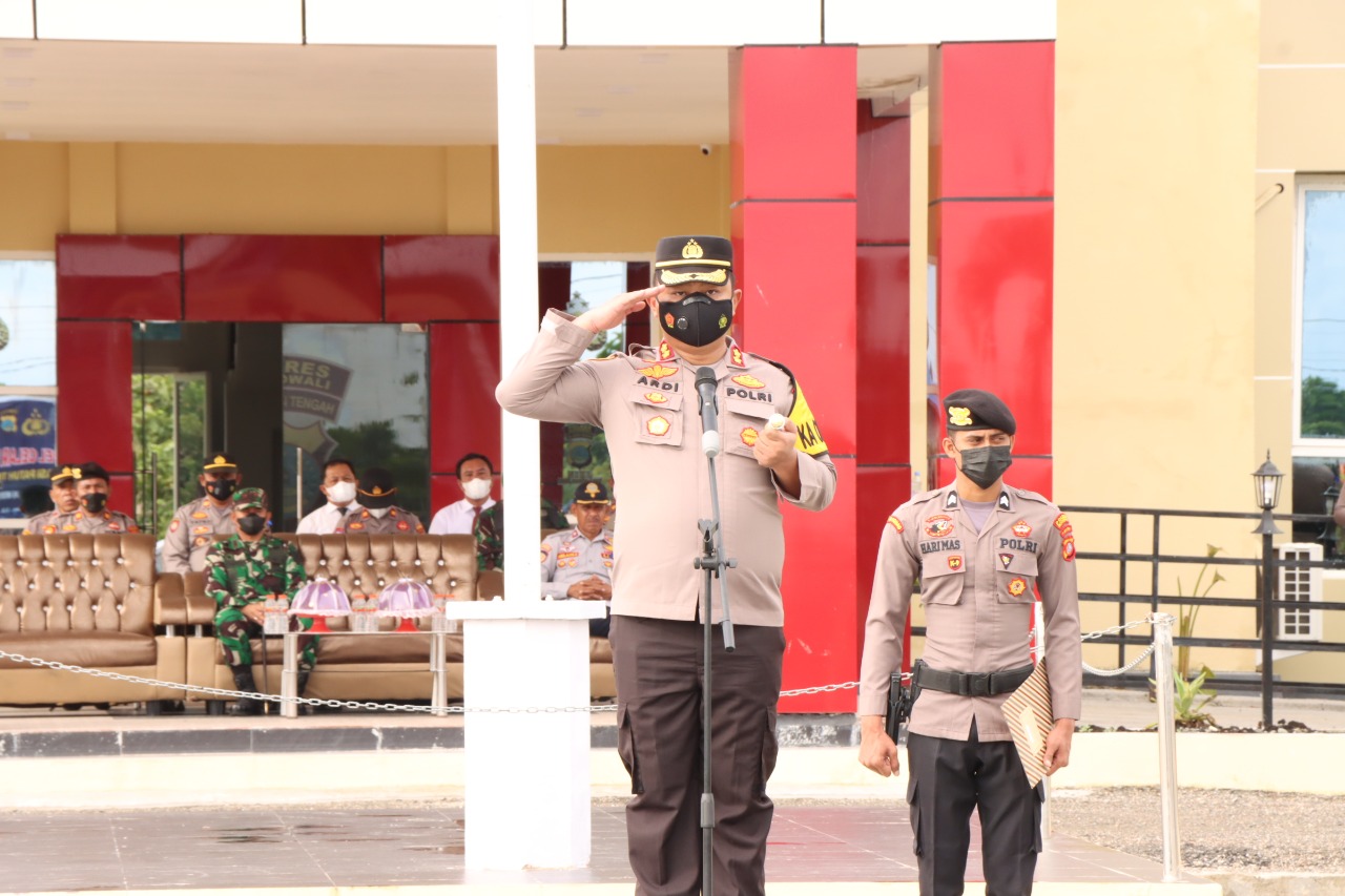 Kapolres Morowali AKBP Ardi Rahananto. S.E., S.I.K., MS.i memimpin Apel Gelar Pasukan Operasi Patuh Tinombala 2022, di Lapangan Apel Polres Morowali. Senin 13 Juni 2022.