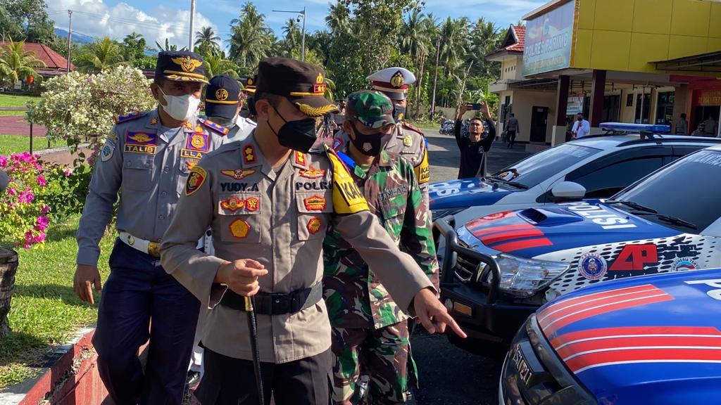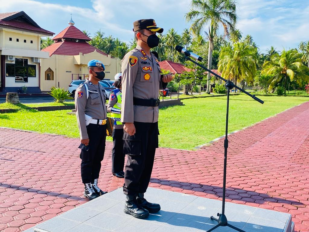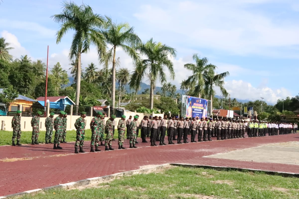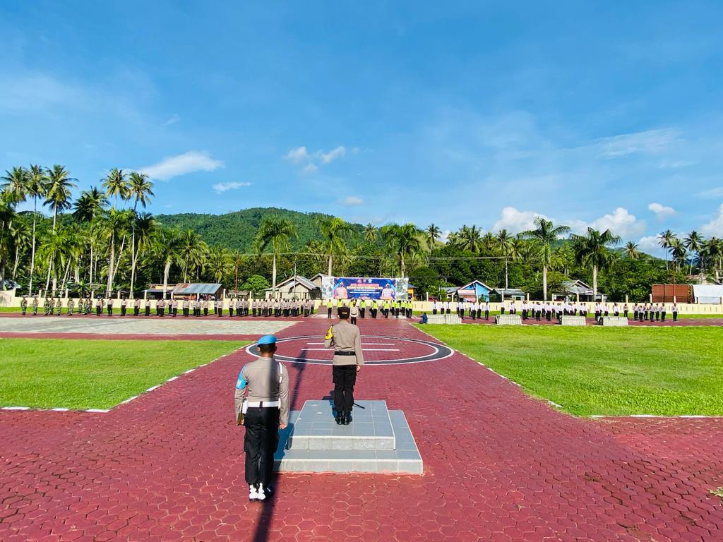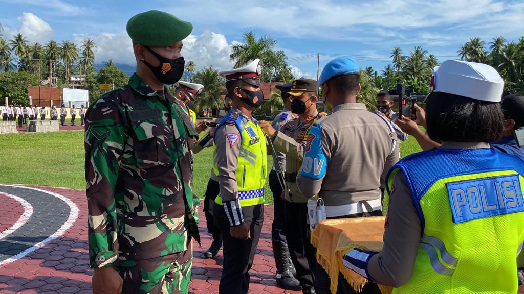Apel gelar pasukan dihadiri oleh para PJU Polres Parimo bersama para perwira Polres Parimo, Danramil Kab.Parimo PELTU I NYOMAN ARNAYA, Perwakilan Dishub ABD MUTHALIB dan perwakilan jasa raharja.