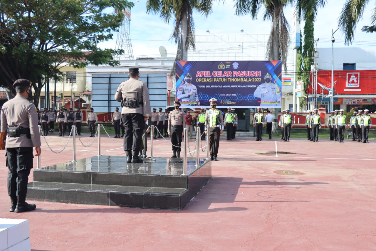Apel gelar Pasukan dalam rangka Operasi Patuh Tinombala 2022 di gelar mulai 13 Juni 2022 s/d 26 Juni 2022 selama 14 hari degan mengusungkan tema “Tertib berlalulintas menyelematkan anak bangsa”. Senin, 13/06/22.
