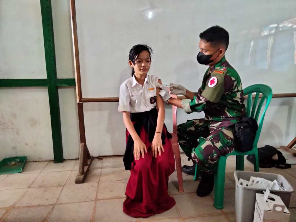 Sertu Aziz selaku Bintara Kesehatan Satgas Pos Kotis mengatakan imunisasi campak ini diberikan untuk anak usia dini di sekolah – sekolah setingkat SD/MI sederajat hingga SMP/MTs dan sederajat.