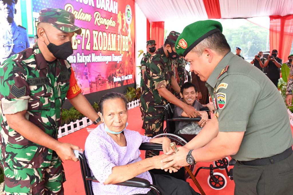 Menyambut HUT ke-72 pada 20 Juni 2022 mendatang, Kodam I Bukit Barisan menggelar kegiatan bakti sosial di Lapangan Benteng, Jl Pengadilan Medan, Rabu (15/6/2020).