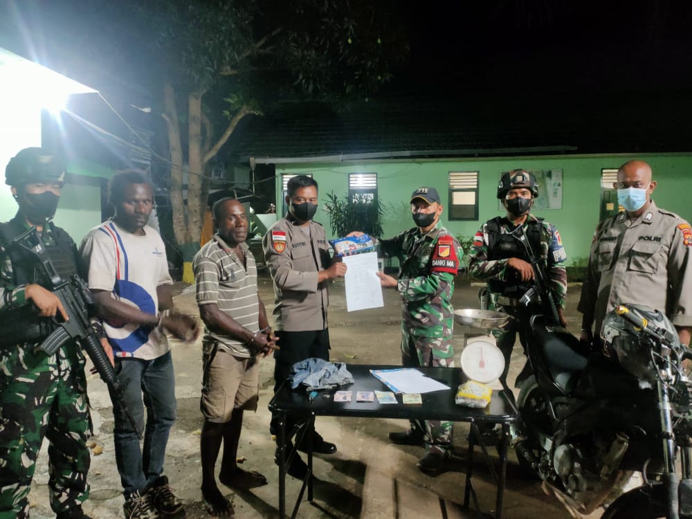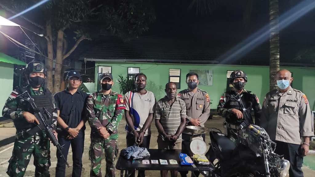 “Setelah dilakukan penyisiran oleh anggota Satgas Yonif 711/RKS, ditemukan barang bukti tidak jauh dari pelaku ditangkap. Keduanya mengaku barang haram tersebut diberikan oleh keluarga mereka yang bertempat tinggal di Negara PNG,” jelas Letkol Inf Mutakbir.