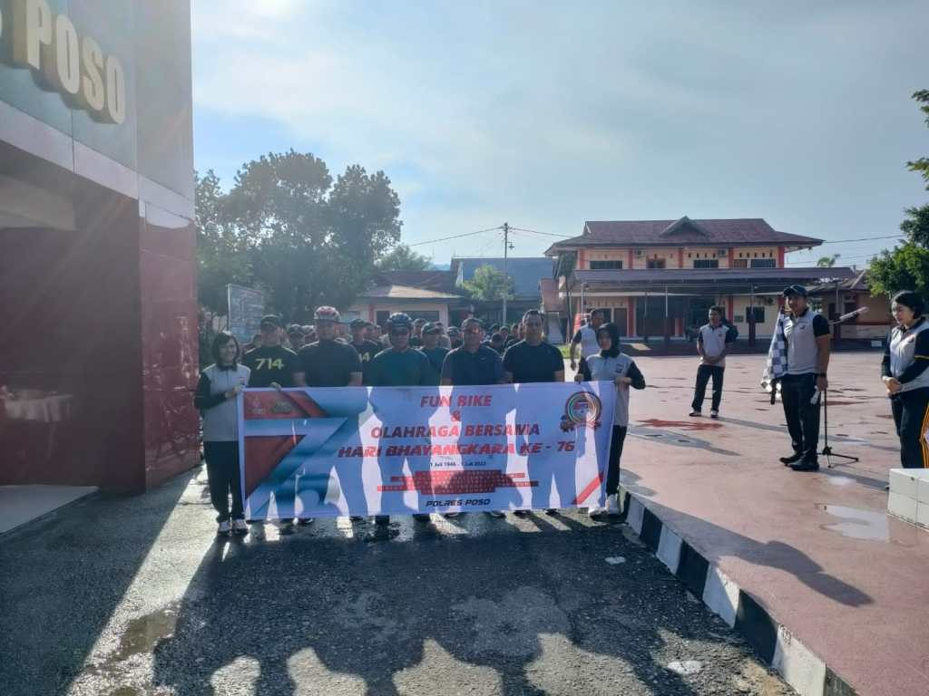 Olah raga bersama senam dan funbike turut dihadiri Kaops Madago Raya, Kapolres Poso, Wakasatgas humas, Dandim 1307 Poso, Danyon 714 Sintuwu Maroso Poso dan beberaoa pejabat TNI Polri lain.