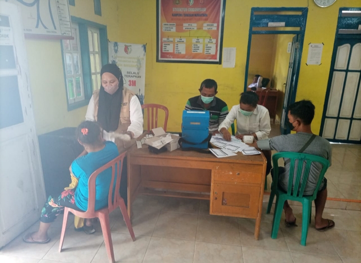 Upaya Percepatan Vaksinasi Nasional, Bhabinkamtibmas Polsek Palolo Desa Bakubakulu Brigpol Tino kawal suntik vaksin bagi warga Desa Bakubakulu Kecamatan Palolo Kabupaten Sigi, Senin (20/6/2022).