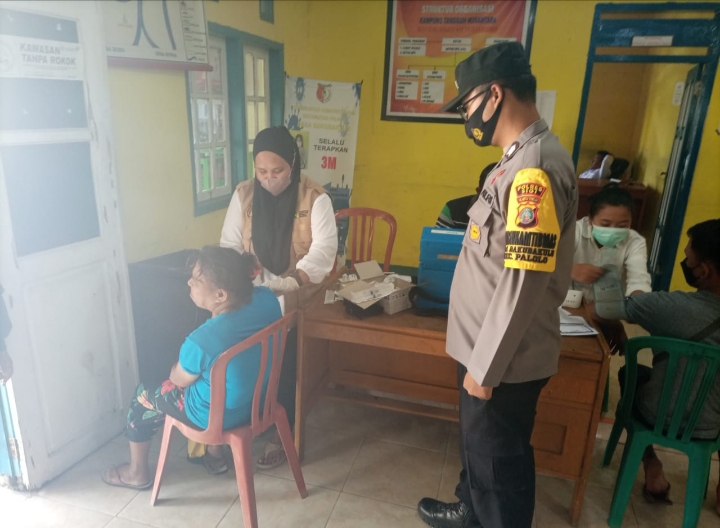 Kapolres Sigi AKBP Reza A Simanjuntak., S.H., S.I.K., M.H menyatakan, Polri Khusunya Polres Sigi dan Jajaran terus Sukseskan percepatan program vaksinasi, berkordinasi dengan Instansi terkait. Brigpol Tino melaksanakan pemantauan dan pengamanan kegiatan vaksinasi bagi masyarakat yang diselenggarakan oleh Nakes PKM Palolo. Adapun vaksinasi bagi warga adalah dosi s 1,2 dan 3 (Booster).